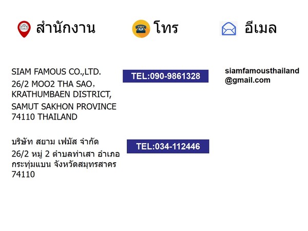 26/2 ม.2 ต.ท่าเสา อ.กระทุ่มแบน(โชคอำนวย แฟคทอรี)จ.สมุทรสาคร74110